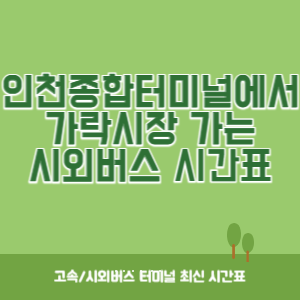 오늘은 인천종합버스터미널에서 가락시장으로 가는 버스시간표에 대한 정보를 말씀드렸습니다. 터미널에 방문하셔기 전에 미리 시간표를 확인해보고 가시길 추천드립니다.