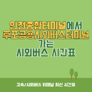 오늘은 인천종합버스터미널에서 후포공용시외버스터미널 로 가는 버스시간표에 대한 정보를 말씀드렸습니다. 터미널에 방문하셔기 전에 미리 시간표를 확인해보고 가시길 추천드립니다.